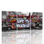 【並行輸入品】 MAMAGO キャンバスウォールアート バンクシー グラフィティ写真 3パネル グラフィティバス 車 抽象装飾絵画 カラフル ストリート ポップアート
