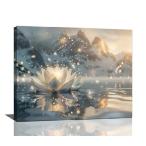 【並行輸入品】 Zen バスルームウォールアート ホワイトロータスキャンバス ウォールアート 山の写真 バスルーム装飾プリント フレーム入り絵画 アートワーク デ