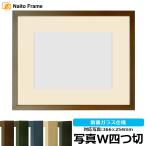 写真用額縁 歩-7/ブラウン 写真ワイド四つ切(366×254mm) 前面ガラス仕様 マット付き 大額