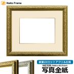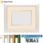 写真用額縁 30009/パールホワイト 写真A3(420×297mm) 前面UVカットアクリル仕様 マット付き(金色細縁付き)