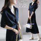 ワンピース レディース オフィス 通勤 vネック ネイビー 上品 ロングワンピース シンプル おしゃれ 女性 きれいめ 結婚式 お呼ばれ 二次会 お宮参り 体型カバー