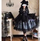 暗黒 ゴスロリ ロリータ ワンピース ジャンパースカート 膝丈 ミドル丈 ロリータ ドレス 裾にフリル ウエストにリボン締め jsk ロリータファッション パール ス