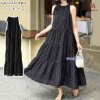 ノースリーブワンピース 水玉 総柄 レディース リボン ブラック Aライン 通勤 オフィス おしゃれ 女性 きれいめ ゆったり ロングワンピース 上品 クルーネック
