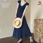 ワンピース レディース ネイビー vネック 水玉模様 フレンチドレス 総柄 ロングワンピース 細見え レース エレガント シンプル 上品 おしゃれ 女性 きれいめ か
