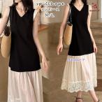 白 パッチワーク タンクワンピース レディース ミモレ丈 ゆったり きれいめ 上品 体型カバー ロングワンピ 半袖 Aライン 薄手 春 夏 無地 大きいサイズ キレイ
