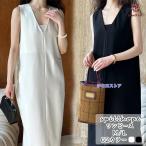 スーツワンピース レディース ノースリーブ 通勤 vネック 上品 フォーマル ロングワンピース 体型カバー シンプル おしゃれ 女性 きれいめ かわいい Aライン 結