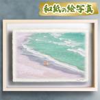 風水 玄関 絵画 絵 インテリア アートパネル 風景画 夏 青 海の絵 和紙の絵写真「コバルトブルーの海と砂浜の犬」 立体額縁付き 71x56cm