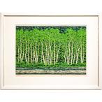 藤田不美夫 「 白樺の林 B 」 木版画 版画 絵画 風景 自然 白樺林 新緑 送料無料