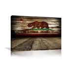 【並行輸入品】 Urttiiyy ヴィンテージ 木製 アメリカ国旗 カリフォルニア共和国 熊 ウォールアート キャンバスプリント 細い青 赤 ライン ホームデコレーション