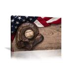 【並行輸入品】 野球 ウォールアート ヴィンテージ アメリカ アメリカ アメリカ国旗 木製ボードに キャンバスプリント アートワーク ホームデコレーション 寝室