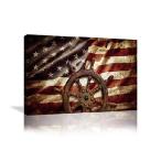 【並行輸入品】 Urttiiyy 航海 ボート 船 舵 キャンバス ウォールアート 米国 アメリカ国旗 プリント アートワーク 壁装飾 寝室 リビングルーム 旗 絵画 ポスタ