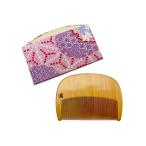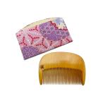 本つげ櫛 花櫛・小花〜和柄(赤系)ケース付〜 (細歯)