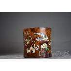 【時代の彩】中国古美術 旧家蔵出 花梨木 彫刻 貝殻象嵌 筆筒 花鳥図 手作り 細密彫 木製工芸品 文房置物 唐物 古玩 古民具 古置物 東洋彫刻 清時代 R07100627