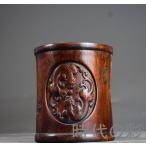 【時代の彩】中国古美術 旧家蔵出 花梨木 彫刻 彫刻 龍紋 筆筒 手作り 細密彫 木製工芸品 文房置物 唐物 古玩 古民具 古置物 東洋彫刻 清時代 R07100634