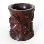 黒檀 ペン立て 筆立て 筆筒 木彫工芸品 コクタン 書道具