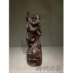 【時代の彩】中国古美術 旧家蔵出 紫檀木 彫刻 手彫刻 達磨祖師人物置物 細密彫 木製工芸品 文房置物 唐物 古玩 古民具 古置物 東洋彫刻 清時代 R07100614