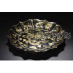 【時代の彩】中国古美術 木胎 橘皮紋 漆器 真金描繪 金漆 龍紋 葵瓣盤 骨董 工芸品 旧家蔵收 清代様式 食器 装飾皿 書斎装飾 時代物 鑑賞品 R07101416