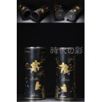 【時代の彩】中国古美術 清代 木胎 描金漆器 嬰戯図 題詩 筒形 花瓶 一対 工芸品 骨董品 高級漆芸 唐物 書斎装飾 時代物 鑑賞品 清代様式 R07101439