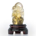仏像彫刻 天然石製 シトリン 黄水晶 観音菩薩 台座付き 13cm