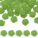 uxcell 50個のグリーン樹脂バラの花ビーズ 20mmフラットバック花チャーム不透明な彫刻バラビーズDIYジュエリー作りネイル