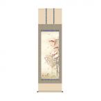 掛軸 掛け軸-桜花/緒方葉水 花鳥掛軸送料無料(尺五 桐箱 本表装)春用掛け軸 床の間 和室 飾る お洒落 モダン 表装幅54.5×高さ190cm