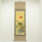 掛け軸 掛軸 色紙 飾る モダン おしゃれ 床の間 和 <送料無料> 渓山作「赤富士飛翔」 衣笠緞子色短掛 インテリア アート 日本 外国人向け土産 リビング 31cm×125cm 掛軸 色紙掛け 赤 富士山 鶴 双鶴 開運 縁起