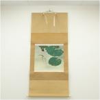 尚志筆 池 蛙図 肉筆絹本掛軸(箱付)