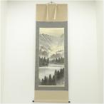 西村華峰筆 水墨山水 肉筆絹本掛軸(共箱)