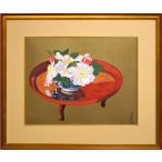 小倉遊亀 「 山茶花 」 リトグラフ 版画 絵画 日本画 さざんか サザンカ 花 秋 冬 花瓶 花台 送料無料