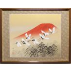 絵画 日本画 赤富士群鶴 (山岸春園) 送料無料 【肉筆】【日本画】【富士】【10号】
