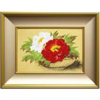 岡 信孝 「 牡丹花 」 日本画 P6 ( 6号 ) 絵画 肉筆 手描き ぼたん 春の花 華やか 紅白 送料無料