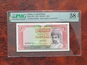 オマーン中央銀行の旧紙幣 PMG EPQ 1 リアル 1989 スルタン Q. ビン サイド