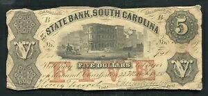 1855 年 $5 州立銀行サウスカロライナ州チャールストン、サウスカロライナ州旧紙幣 (D)