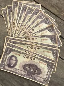 ヴィンテージ アンティーク 1940 中国銀行 100 元旧紙幣 16 枚のロット