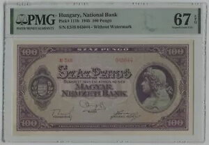PMG 67 ハンガリー 1945 国立銀行 旧紙幣 100 ペンゴ ピック #111b