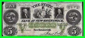 1800 年代の 5 ドル ニュージャージー州立銀行ニューブランズウィック州旧紙幣 ~ 非常に HTF