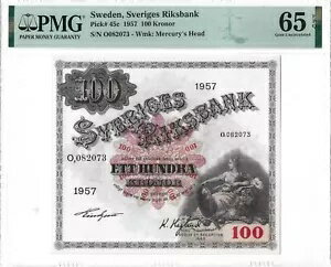 PMG 65 EPQ スウェーデン 1957 スウェーデン国立銀行旧紙幣 100 クローナ