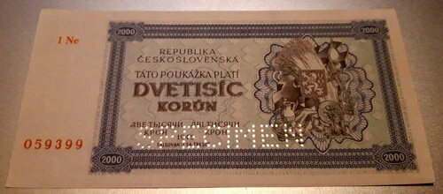 希少なチェコスロバキア 2000 コルナ旧紙幣 UNC チェコスロバキア 新品