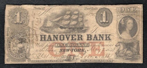 1853年 1ドル ハノーバー銀行 ニューヨーク 旧紙幣 *希少*