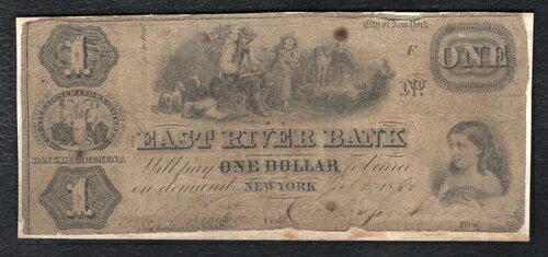 1860年 1ドル イーストリバーバンク ニューヨーク市 旧紙幣 *希少*