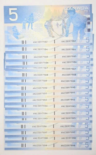 2002年カナダ紙幣 5ドル 希少な旧紙幣 16連番 17枚セット