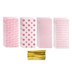 uxcell 100個のセ ロファンお菓子バッグ 10.8\"x4.9\" クリアフラットセ プラスチックキャンディーギフトグッディーバッグ ピンク