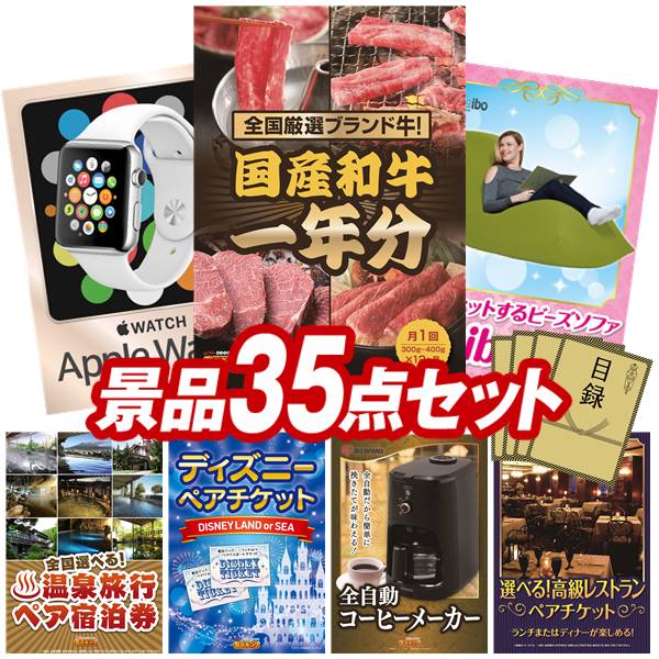 ランキング受賞★ 忘年会景品 35点セット 特大パネル 豪華目録 ビンゴ 結婚式 披露宴 二次会 忘年会 新年会 ゴルフコンペ 景品セット 【全国ブランド和牛1年分(毎月300~400g×12回)、Apple Watch SE】 送料無料 特大パネル 豪華目録付き