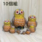 マトリョーシカ ロシア民芸品 土産物 手作り人形 手描き フクロウ オブジェ 10個組 木製 インテリア雑貨 洋風 可愛い ギフト プレゼント キッズ 北欧雑貨