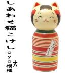 薬師窯 招き猫 彩絵 しあわせ猫こけし (大) (ロクロ模様) ねこ こけし コケシ 民芸品 和雑貨 インテリア 置き物 コレクション 縁起物 開運