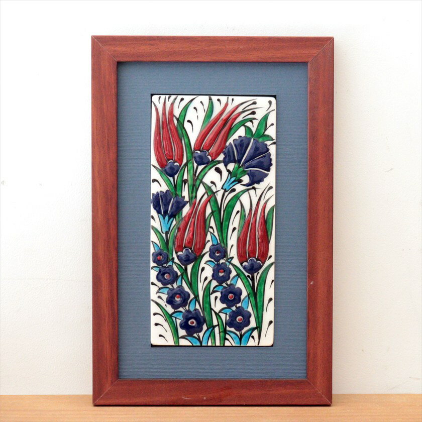【15%OFFクーポン対象】手書きタイル トルコ陶器 ミニタイル1枚額 H29×W19×D1.5cm チューリップ Turkish Hand Paint Tile