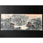 【時代の彩】中国古美術 近現代の書画家 陸儼少作款【山水図】肉筆保証 六尺横幅 画芯 水墨画 書画 宣紙 立軸 妙墨逸品 時代物 古玩 古美味 唐物 R07102010