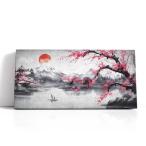 【並行輸入品】 日本のウォールアート 寝室用 ピンク 壁装飾 桜 ウォールアート 日本の水墨画 ウォールアート 桜 富士山 月 湖 モダン 黒と赤の風景