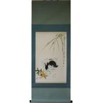 掛け軸 肉筆水墨画 動物画 「瑞兎添福」 宋チ(王へんに奇)作
