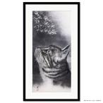 水墨画 猫「枠シリーズ1」インテリア 水墨 85cm×72cm 額入り 縦長 モダン 現代美術 精密複製 風水 日本画 本田一誠